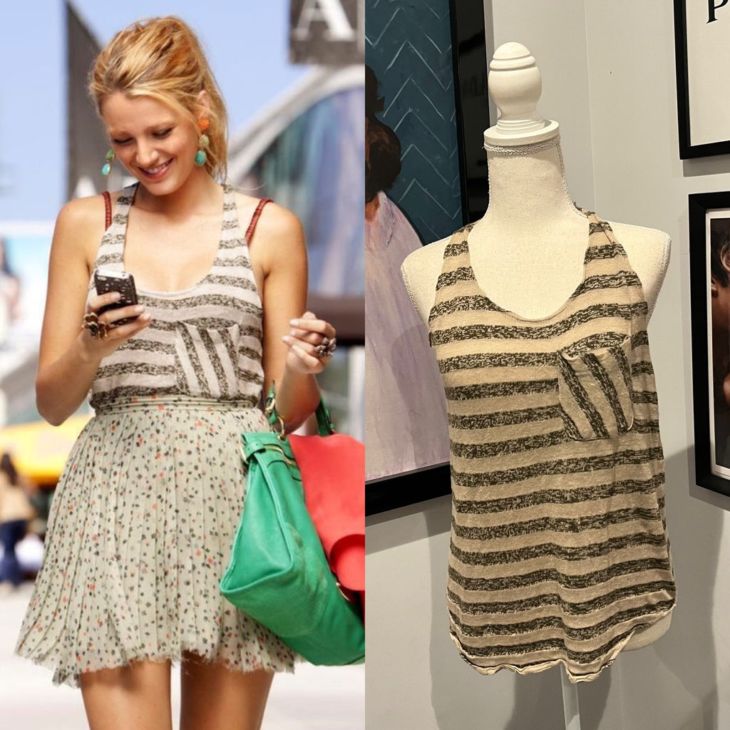Serena van der Woodsen’s Shipley & Halmos Gray Striped Tank Top, Gossip Girl S5 E1 (size X-small)