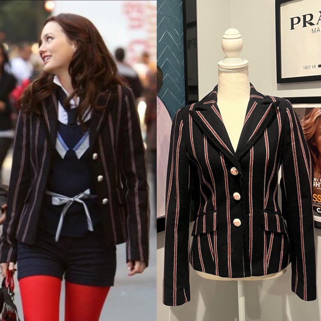 Blair Waldorf’s Zara Navy Red Striped Wool Blazer, Gossip Girl S1 E10 (size small)
