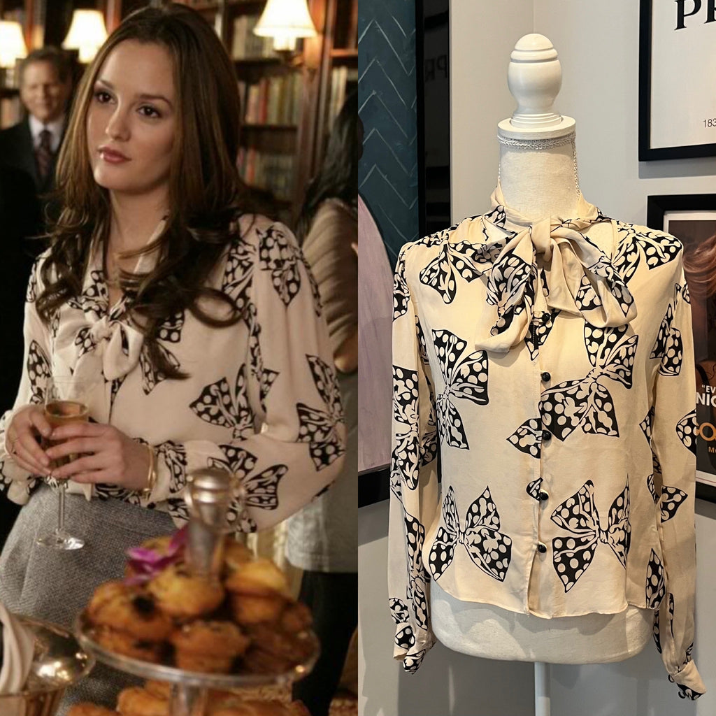 Blair Waldorf’s Milly Cream Bow Printed Silk Blouse, Gossip Girl S2 E15 (size 4)