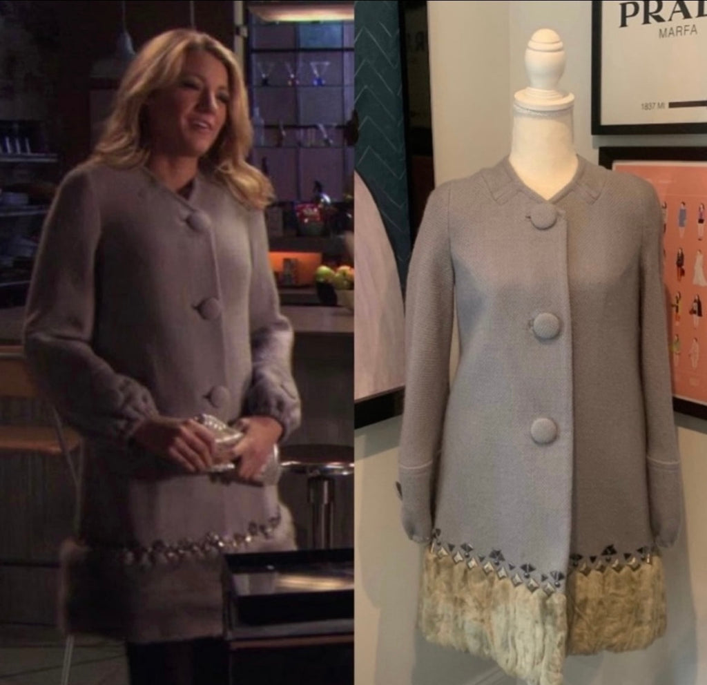 Serena van der Woodsen’s Rebecca Taylor Gray Rabbit Fur Studded Coat, Gossip Girl S1 E12 (size 0)