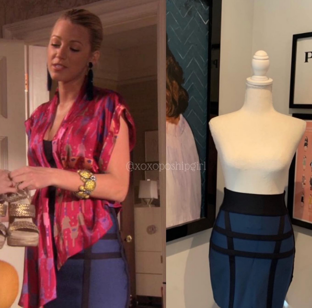 Serena van der Woodsen's Herve Leger Blue & Black Skirt, Gossip Girl S3 E11 (size medium)