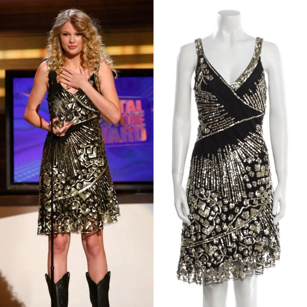 Taylor Swift’s Milly Black and Gold Sequin Dress, ACM Awards 2009 (size 8)