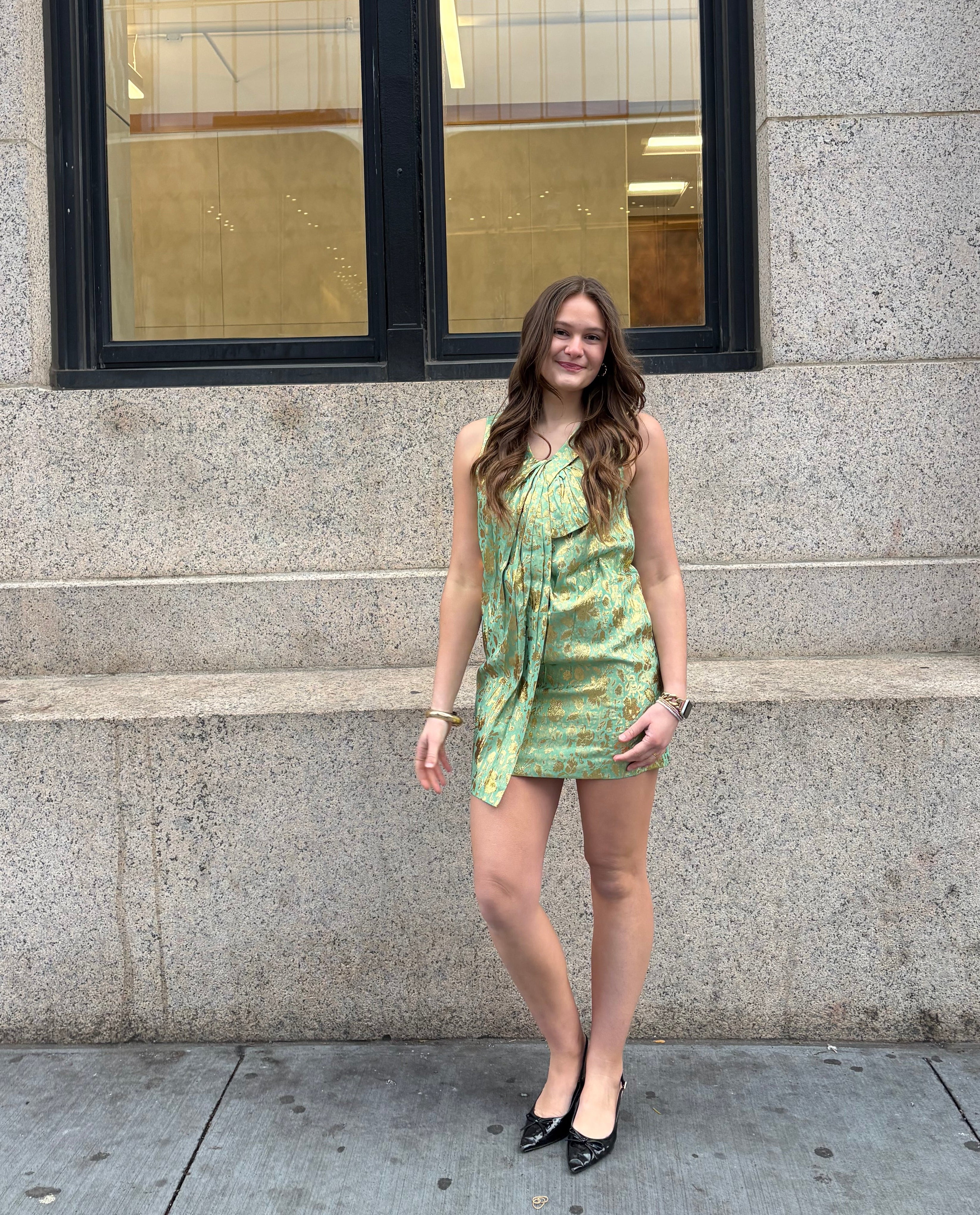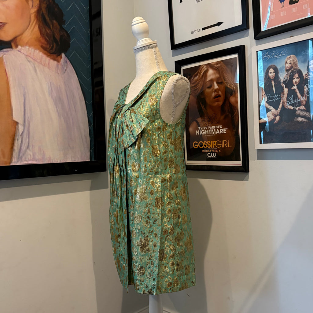 Blair Waldorf’s 3.1 Phillip Lim Green Gold Brocade Mini Dress, Gossip Girl S2 E20 (size 2)