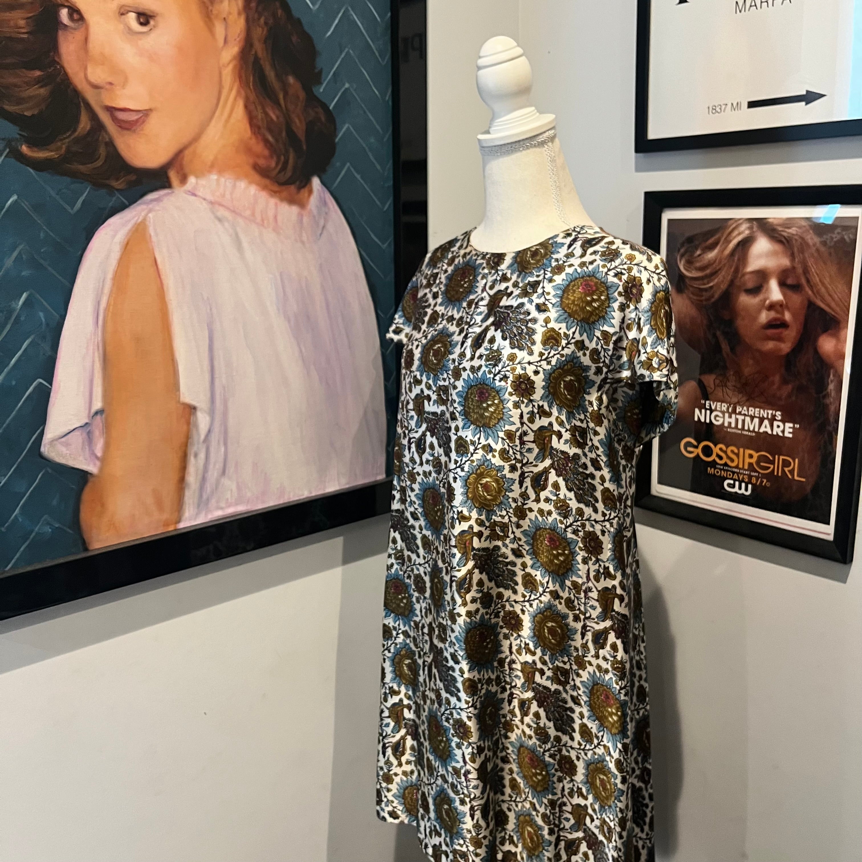 An Upper East Side classic — Blair’s Balenciaga dress. This one is the rare green version: same designer, same whimsical print, same floaty cut, just in an alternate colorway straight from the archives.