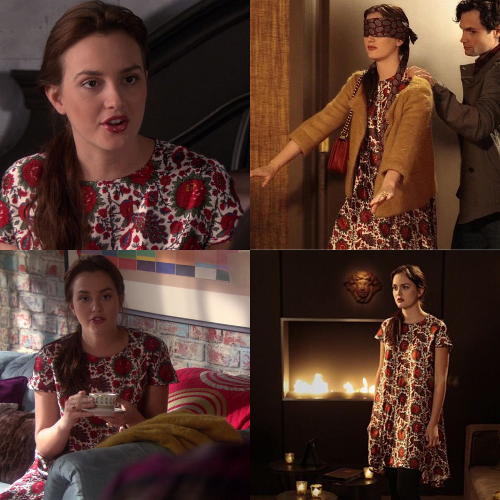 When Blair wore the red iteration during her Chuck car crash storyline, it became one of those instantly recognizable Gossip Girl looks: youthful yet luxe, quirky yet commanding. The shift silhouette, paired with Balenciaga’s graphic floral, is Blair at her most playful but still entirely in control.