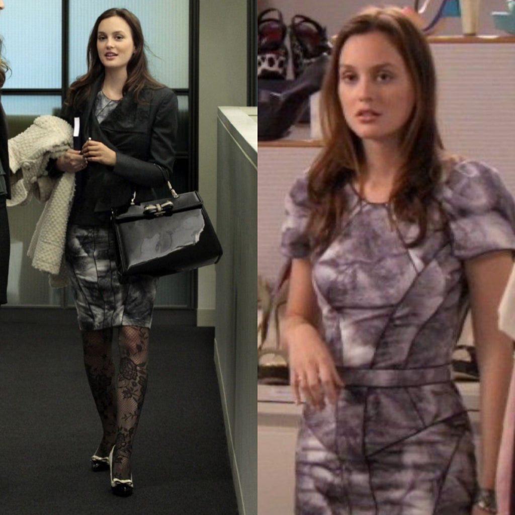 Ambition in print. Blair Waldorf’s Bensoni Suede Printed Dress, Gossip Girl S4 E13 (size 8), is one of her most memorable internship looks — sharp, structured, and perfectly fit for conquering the W Magazine office.