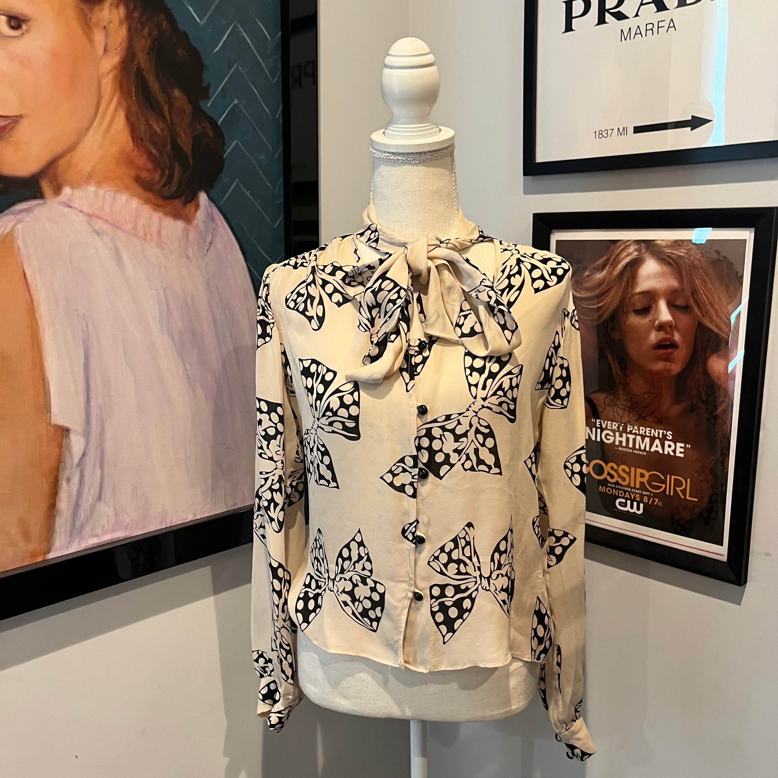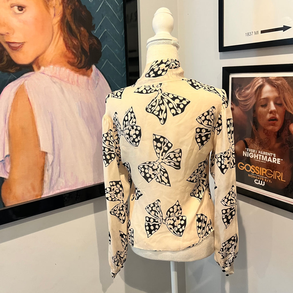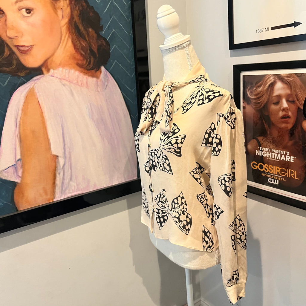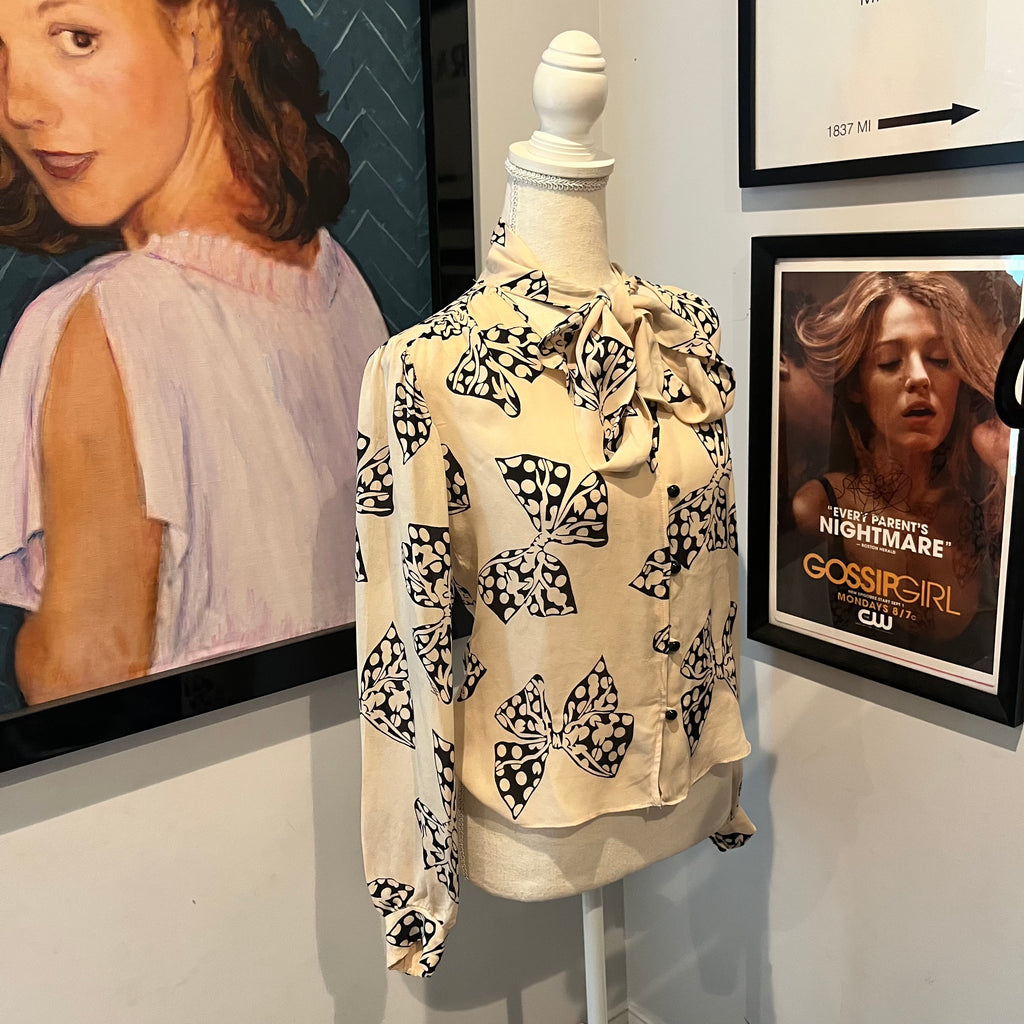 Blair Waldorf’s Milly Cream Bow Printed Silk Blouse, Gossip Girl S2 E15 (size 4)
