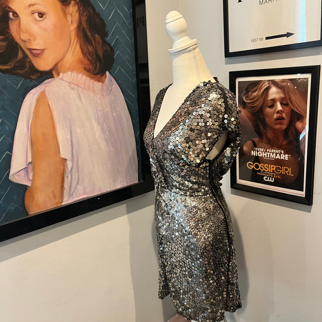 Blair Waldorf’s Valentino Silver Sequin Mini Dress, Gossip Girl S4 E3 (size 6)