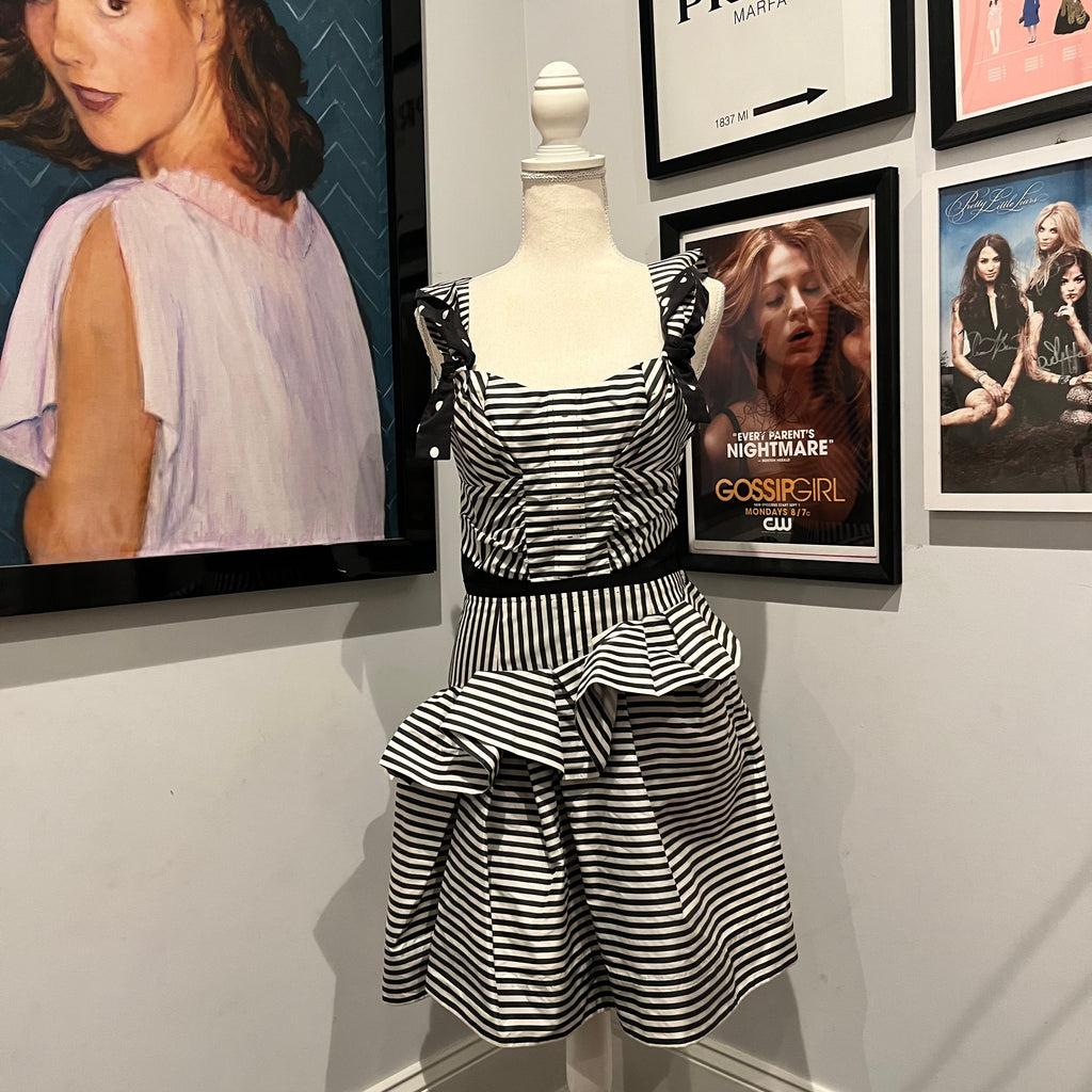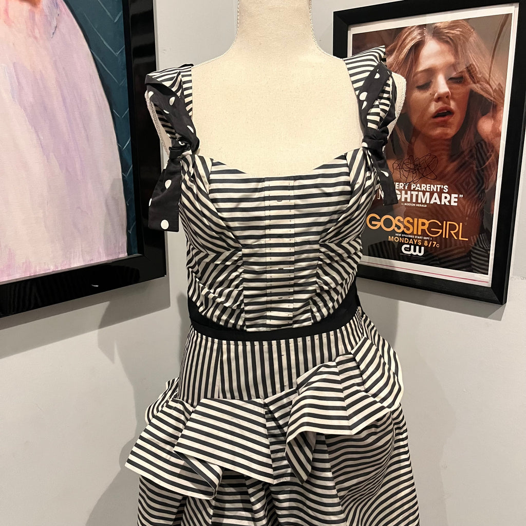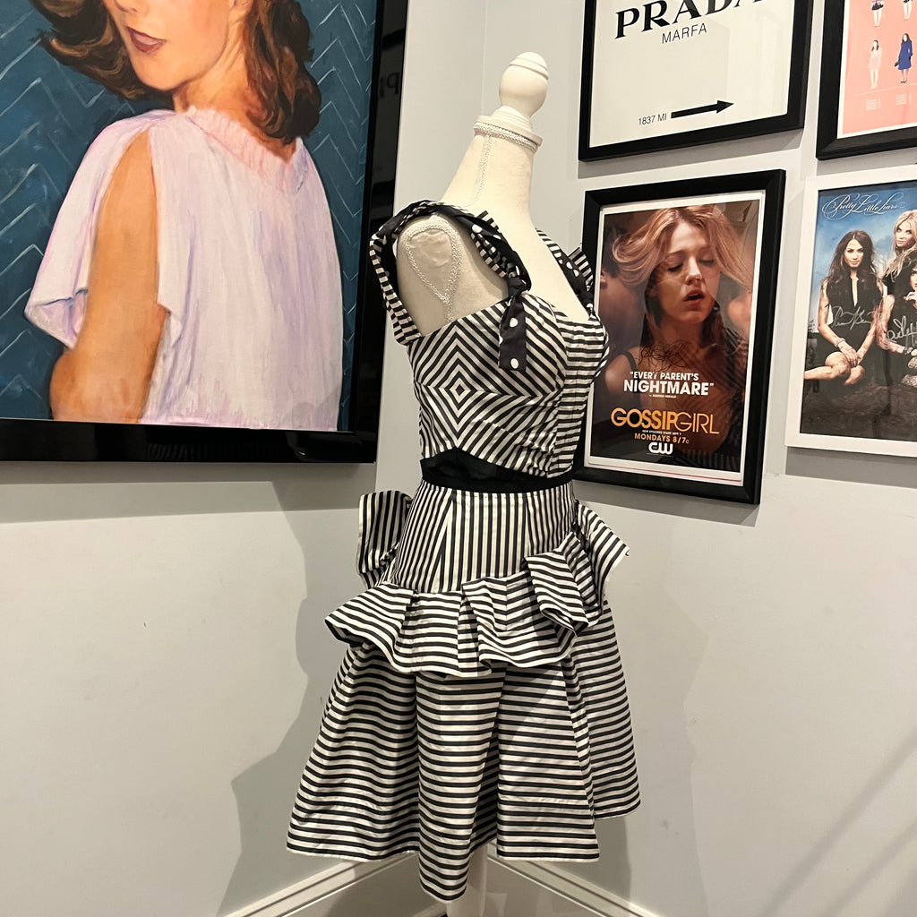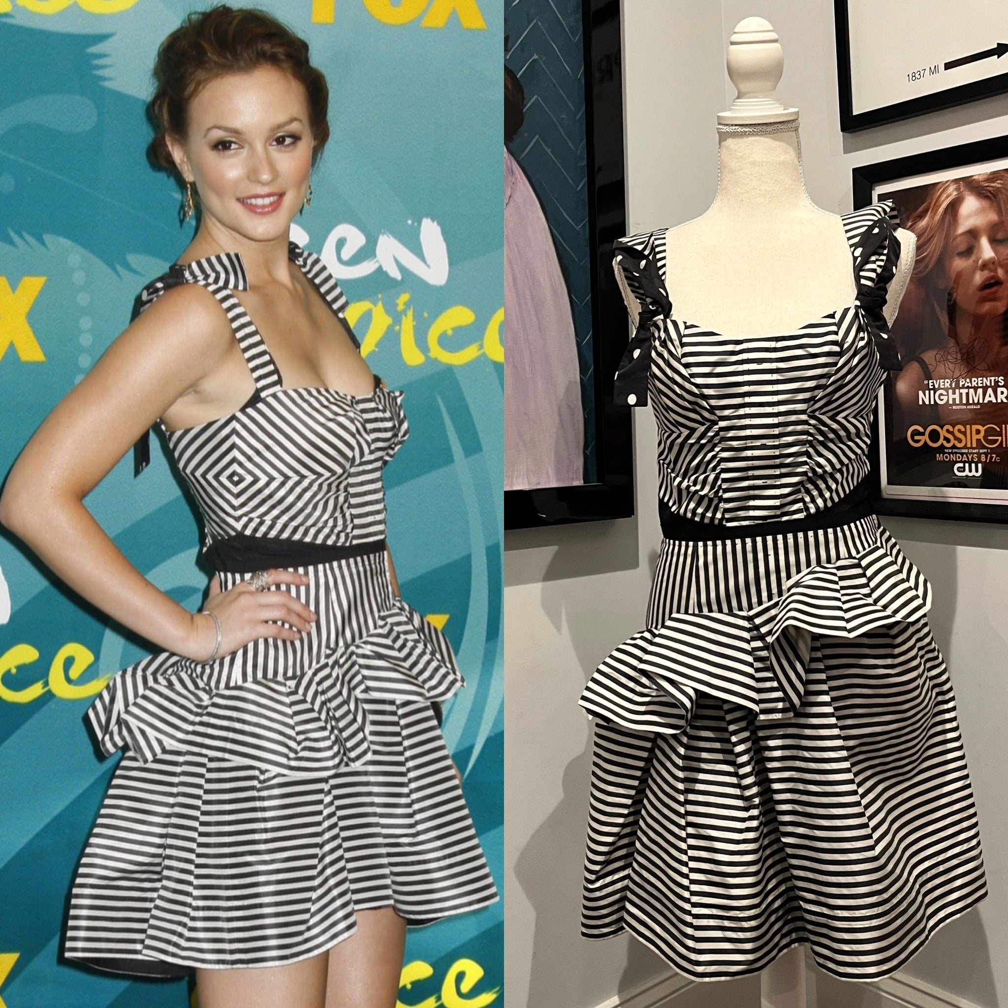 An undeniable moment in early 2000s pop culture. This original Louis Vuitton black-and-white striped mini dress was worn by Leighton Meester to the 2009 Teen Choice Awards: a look that captured her at the height of her Gossip Girl-era stardom.
