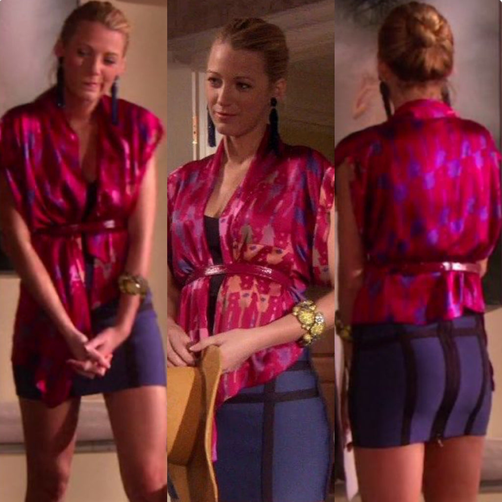 Originally released in the early 2010s, the structured navy-and-black paneling shows off Léger’s signature sculpted silhouette, giving Serena that sleek, statuesque look she carried so naturally. It’s a sharper, more refined moment in her wardrobe arc, marking her transition into a more sophisticated, high-fashion version of the girl who once drifted through the city in boho fringe. A true rarity from a major episode.