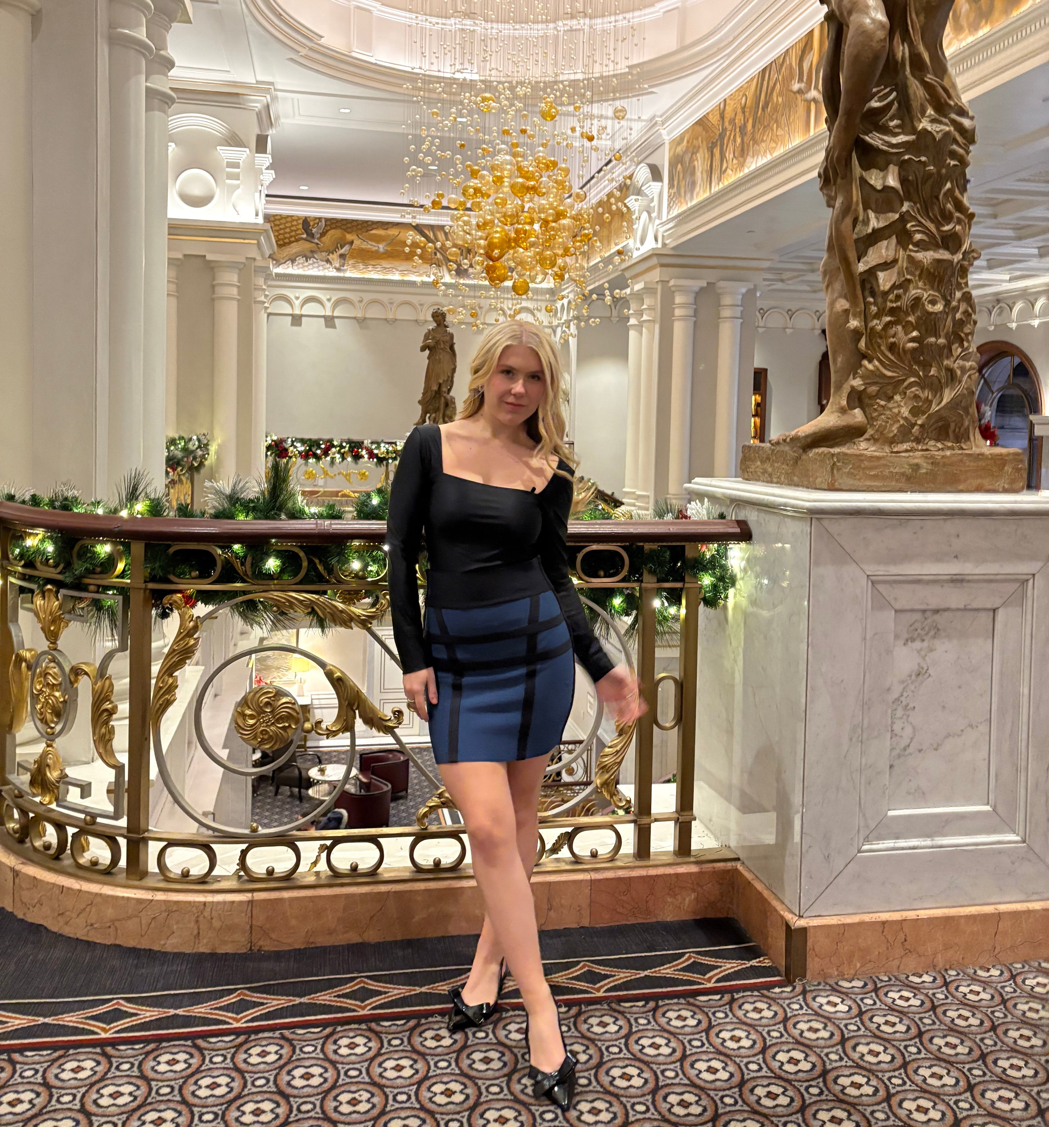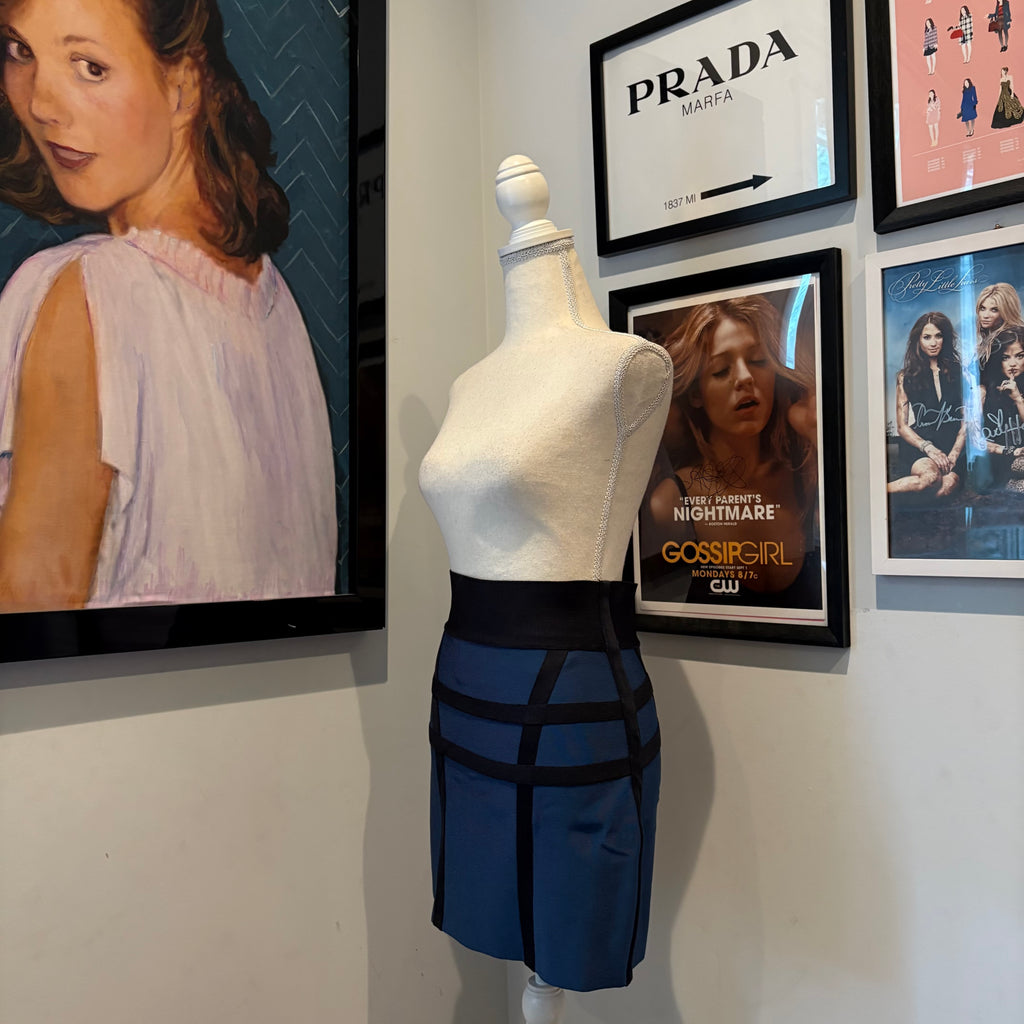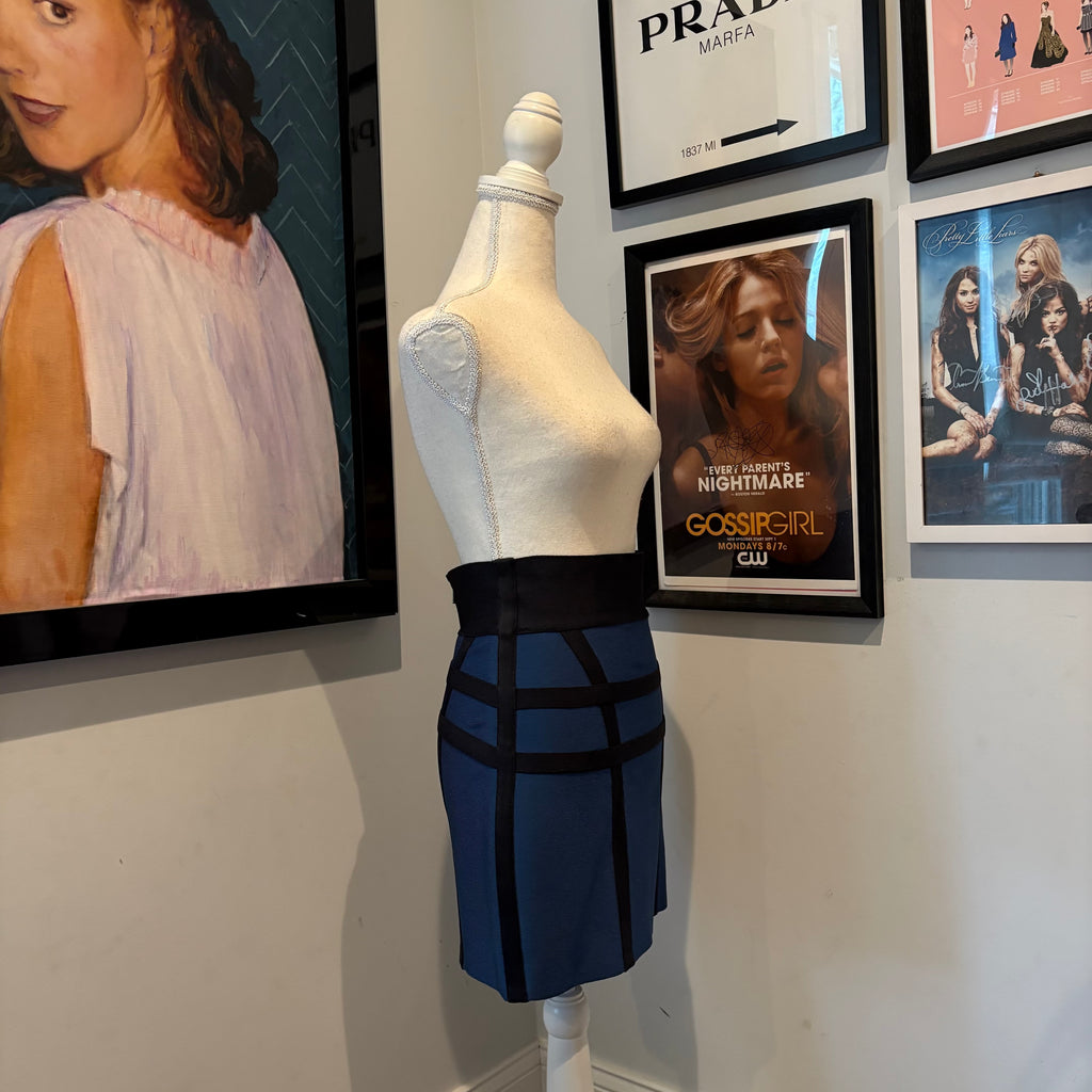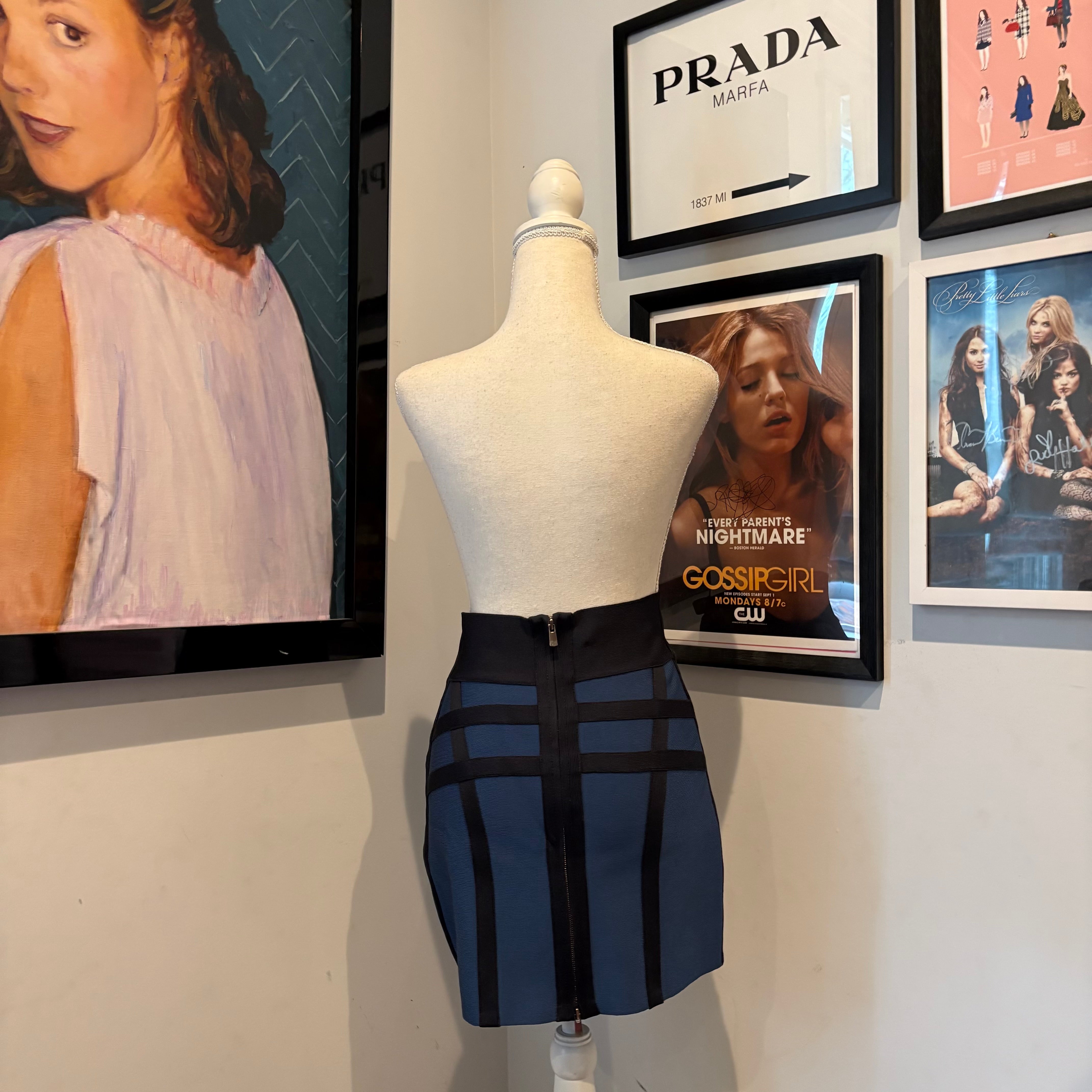 Serena van der Woodsen’s Herve Leger Blue Black Bandage Skirt, Gossip Girl S4 E22 (size M)