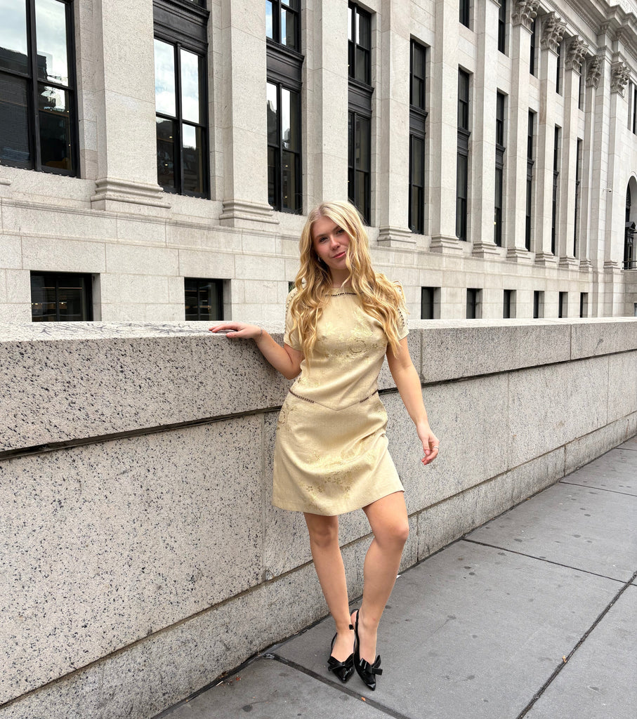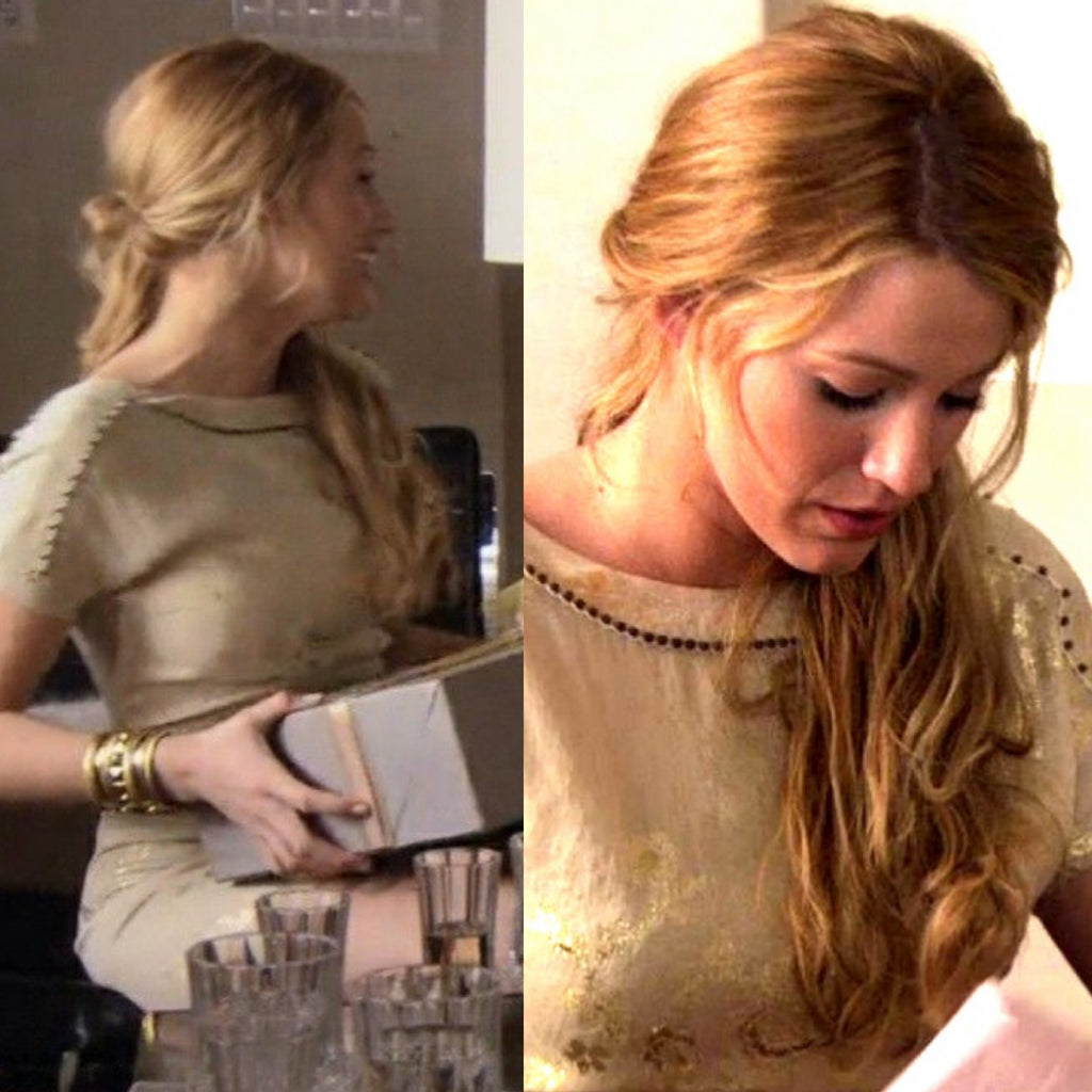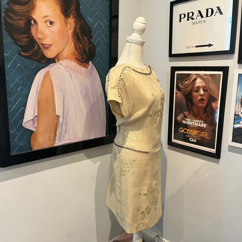 Serena van der Woodsen’s Mayle Gold Jacquard Embellished Dress, Gossip Girl S1 E14 (size 2)