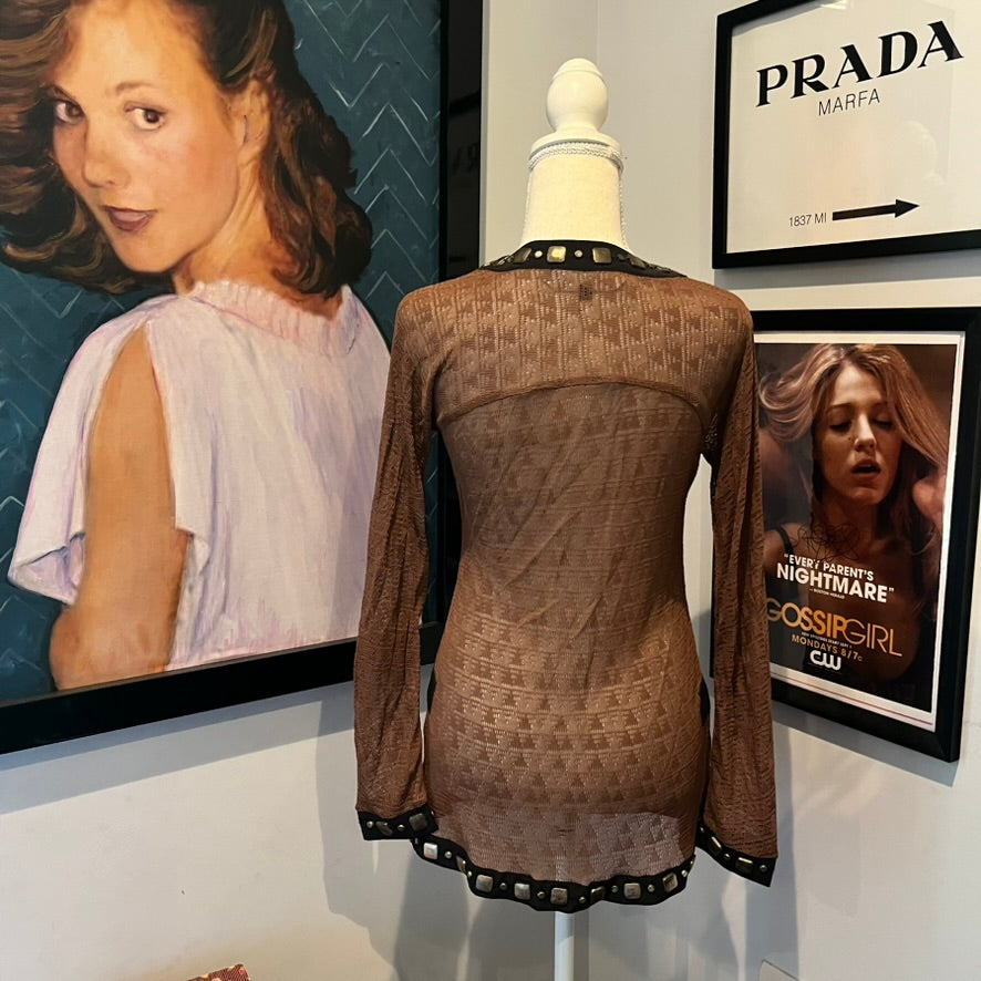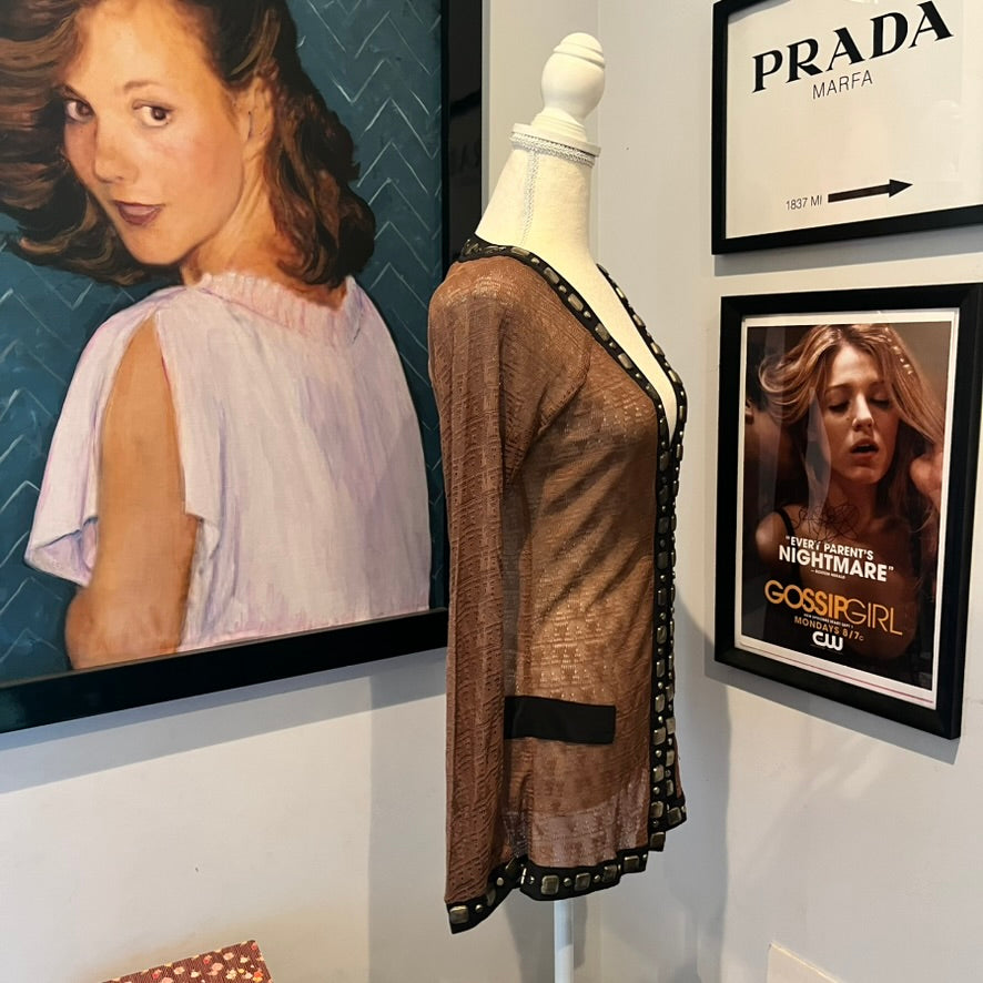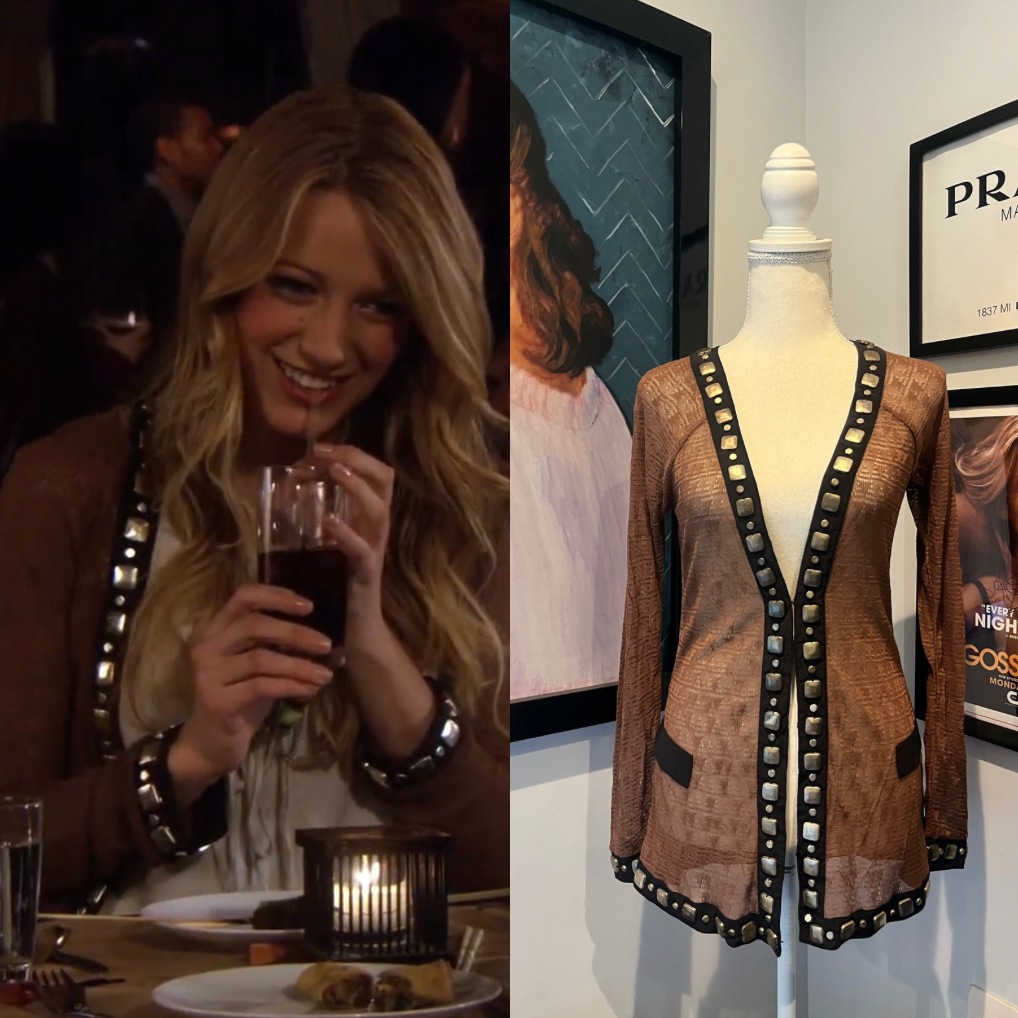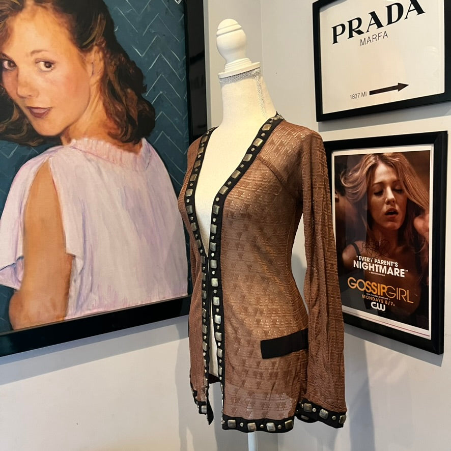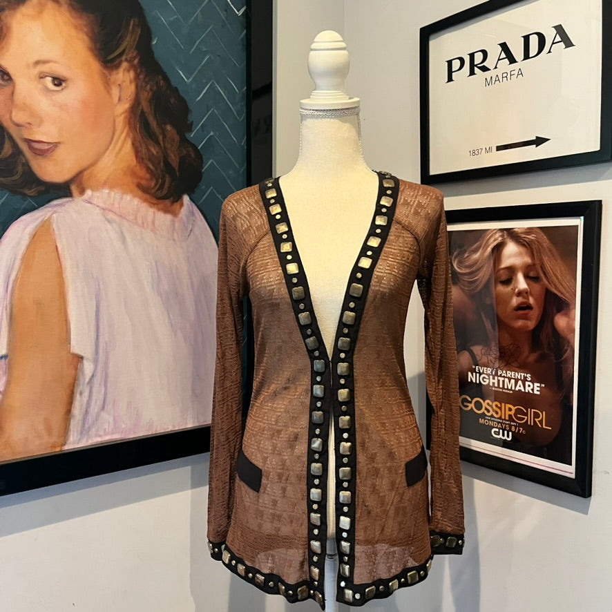Serena van der Woodsen's Vena Cava Brown Studded Cardigan, Gossip Girl S1 E15 (size X-small)