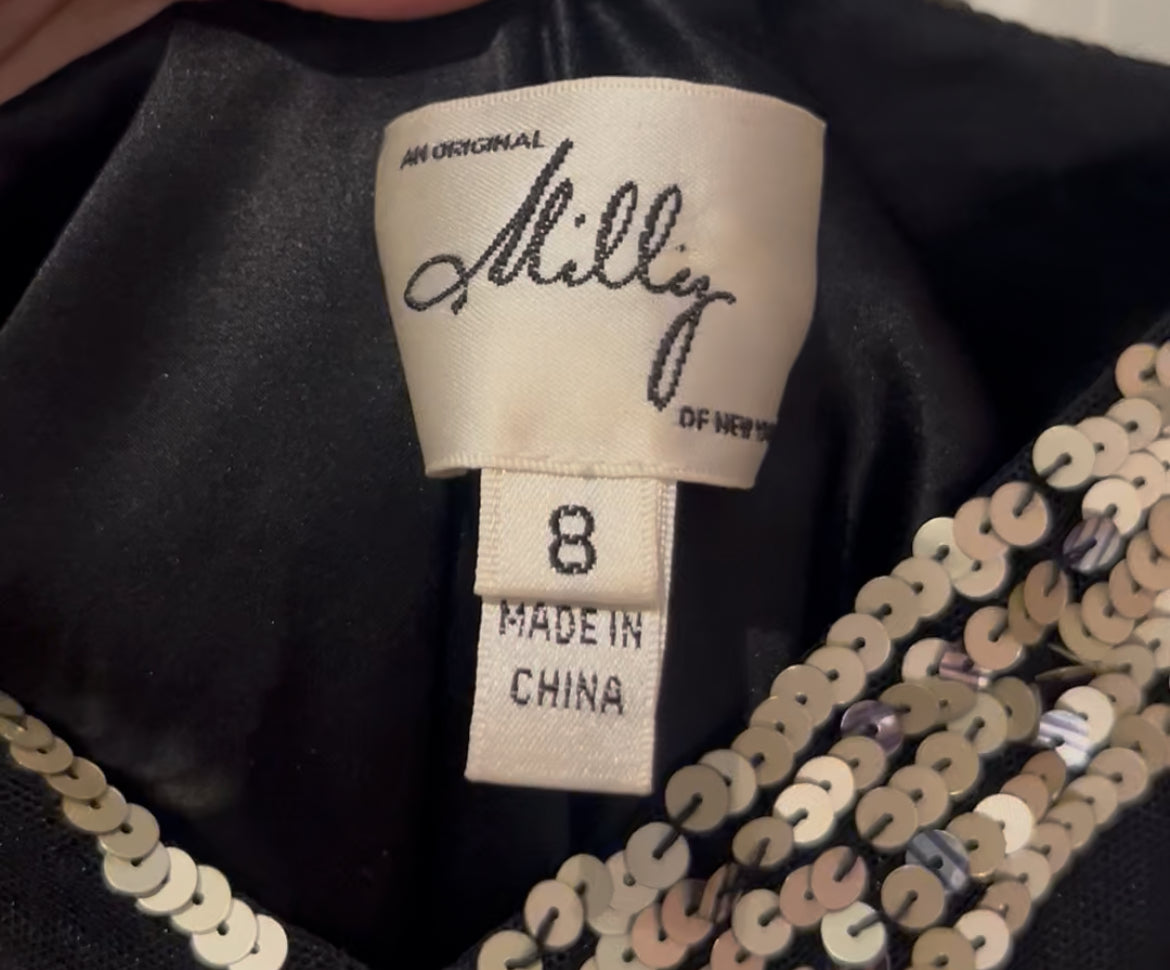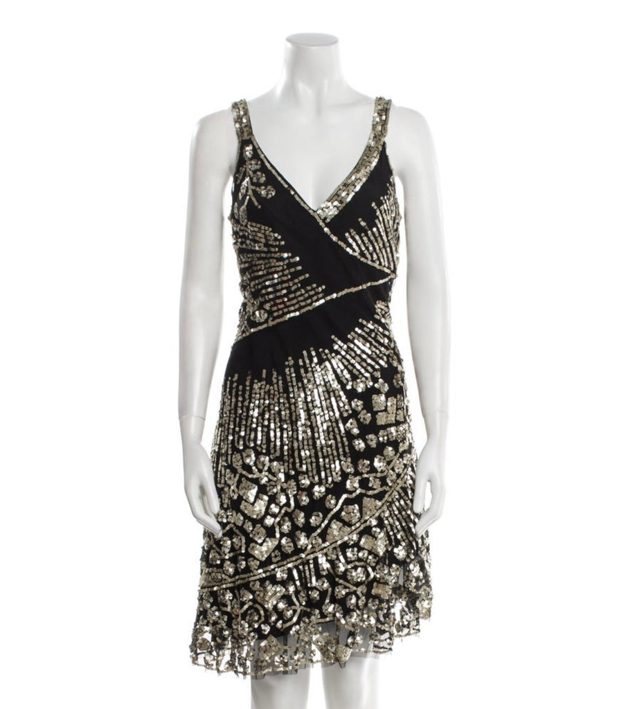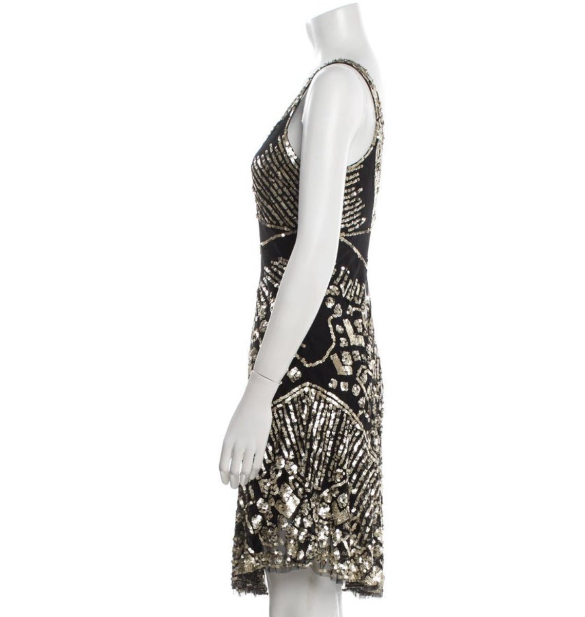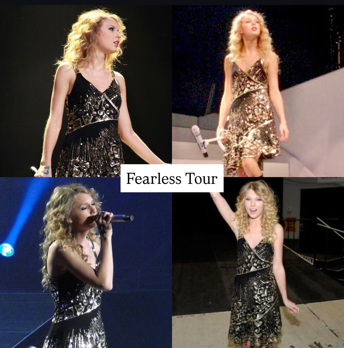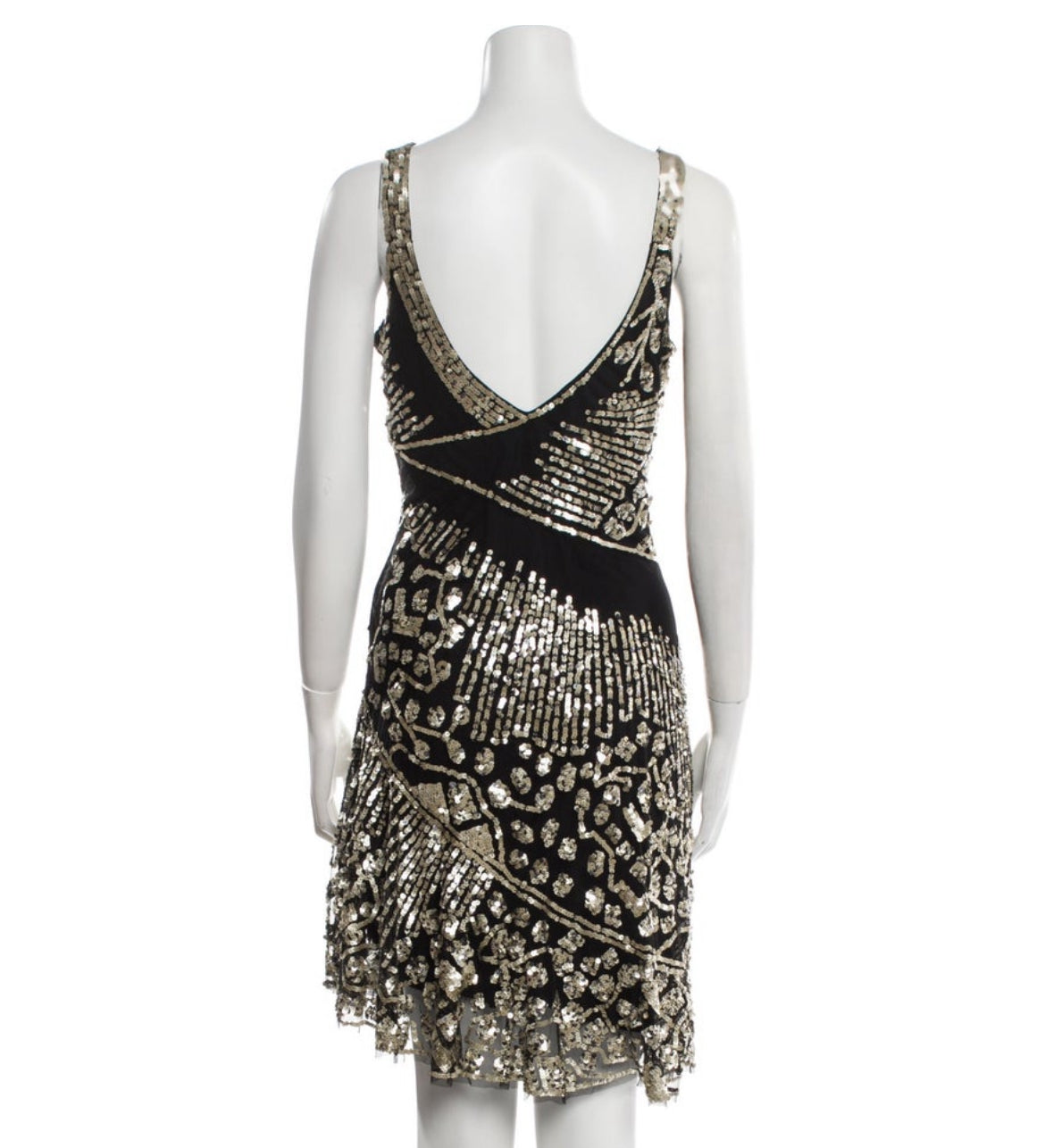 An instantly recognizable classic from Taylor’s Fearless era. This original Milly of New York black cocktail dress, drenched in hand-embroidered gold and silver sequins, was worn by Taylor Swift at the 2009 Academy of Country Music Awards: the night she performed “You’re Not Sorry” on piano and took home multiple awards. It was also worn MANY times (almost every show) throughout Taylor’s “Fearless” album tour… beyond iconic.