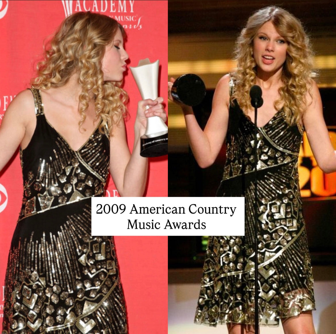 Taylor Swift’s Milly Black and Gold Sequin Dress, ACM Awards 2009 (size 8)