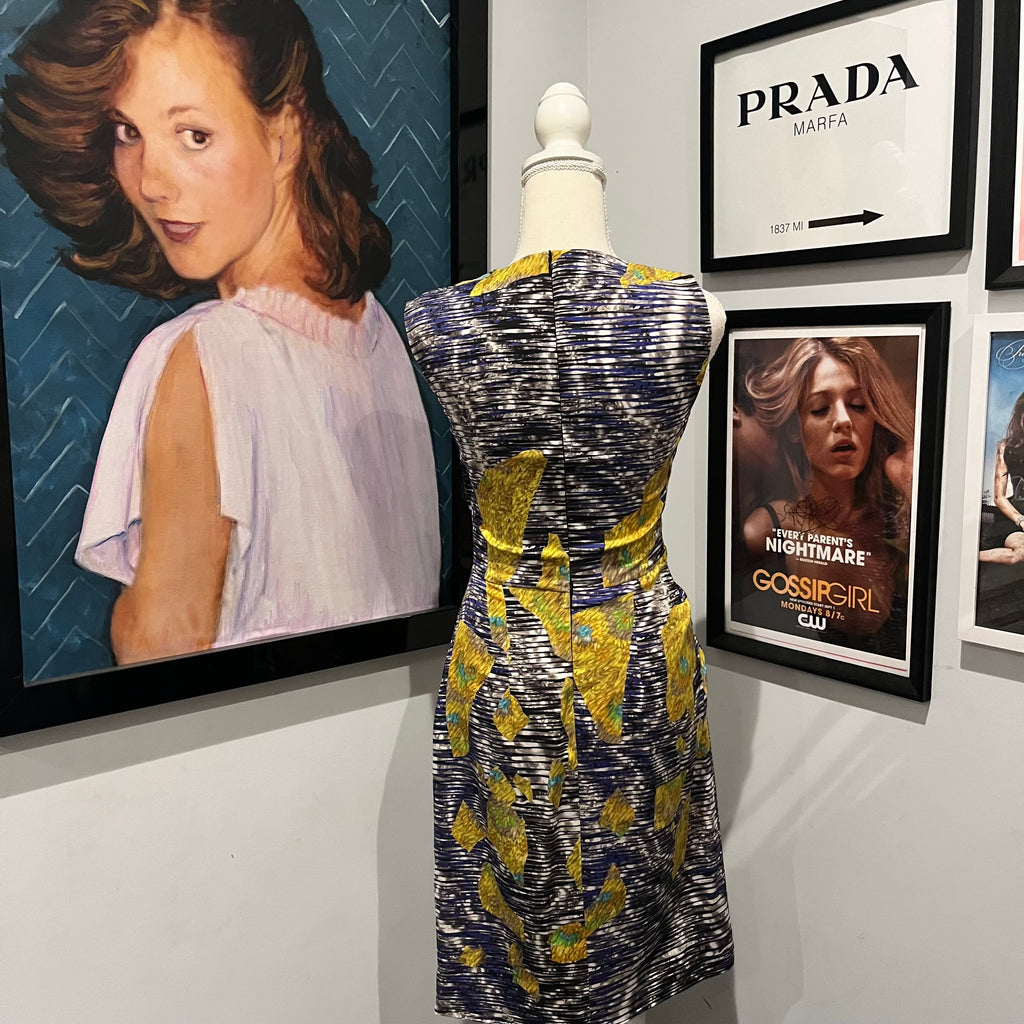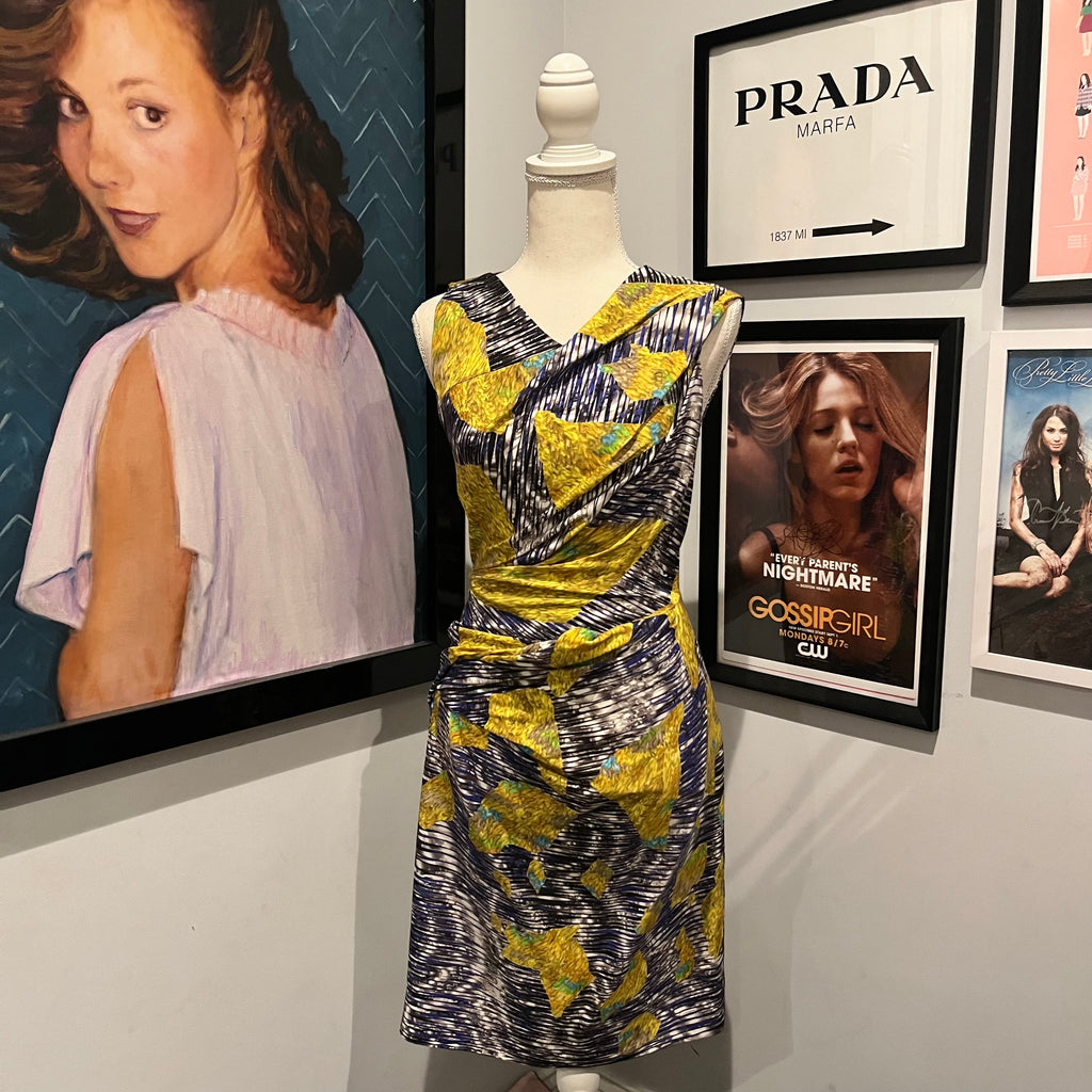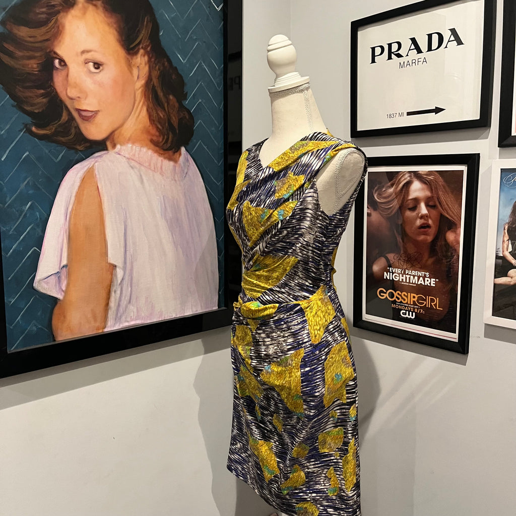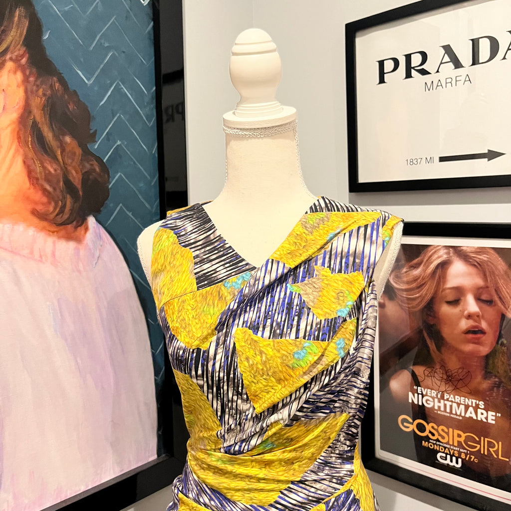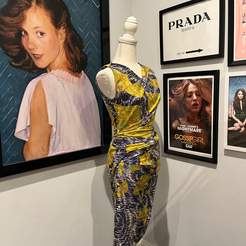 An Upper East Side classic. This original Peter Pilotto sleeveless draped dress was worn by Serena van der Woodsen (Blake Lively) in Gossip Girl Season 5, Episode 23, “The Fugitives,” during her ill-fated attempt at stepping into Blair’s shoes for the night.